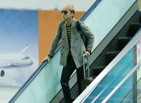 | Nam ca sỹ ăn mặc phong cách theo kiểu Hàn Quốc xuất hiện tại sân bay Tân Sơn Nhất. |