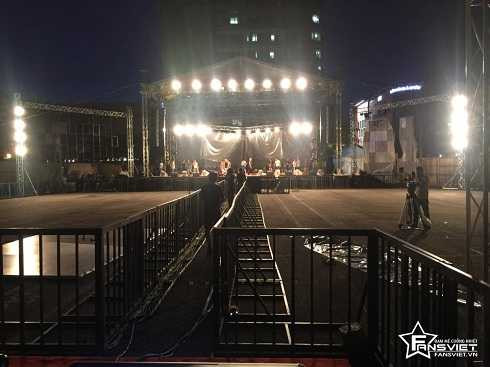| Sân khấu ngoài trời được dựng rất rộng và quy mô, hứa hẹn mang đến một "đại tiệc âm nhạc" thực sự. |