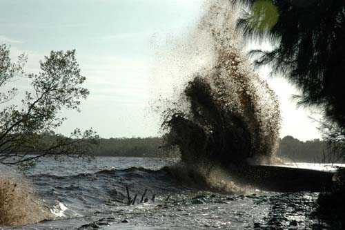Theo người dân địa phương, triều cường xảy ra từ khoảng 20 giờ ngày 12/10 đến rạng sáng ngày 13/10 với những cột sóng cao từ 3 đến 4m.