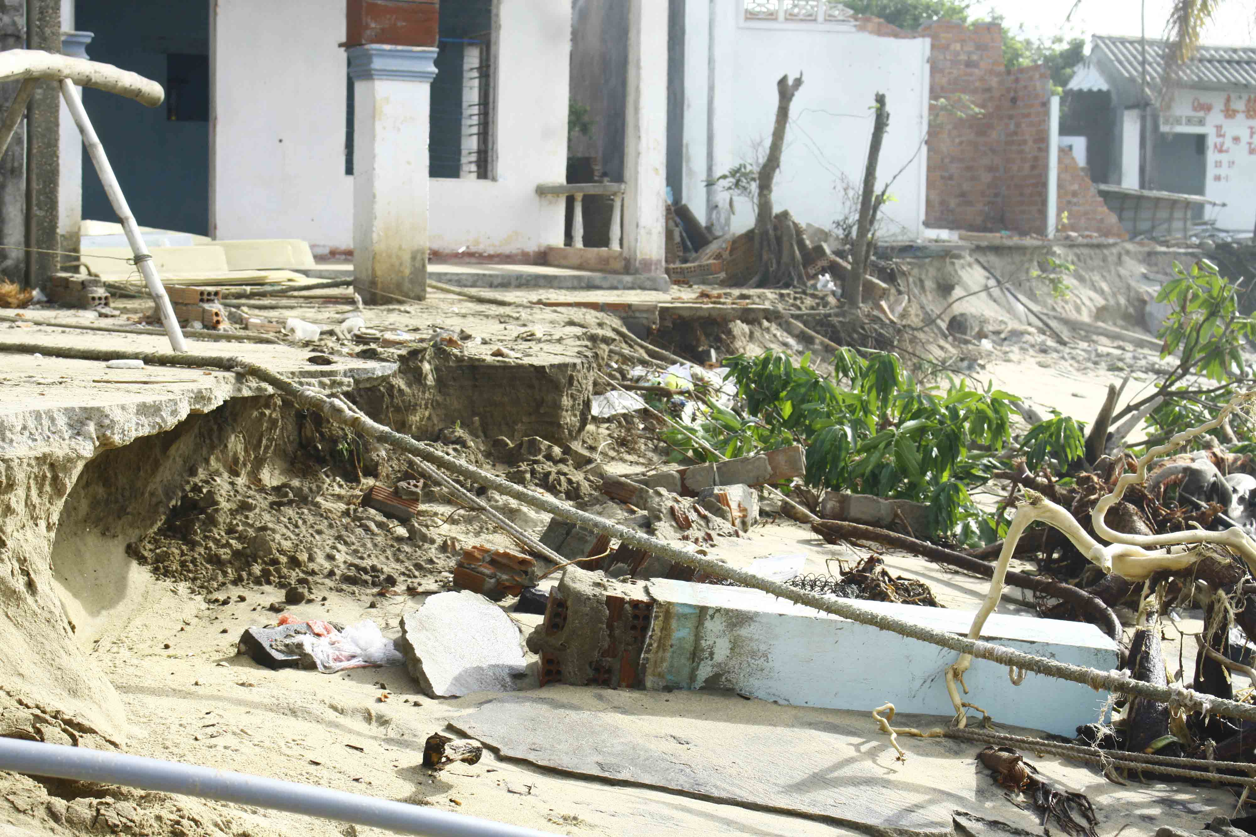 Cứ cái đà này thì chẳng bao lâu nữa, nhà tôi rồi cũng bị sóng biển đánh sập như một số hộ trong xóm”, bà Lành lo lắng.