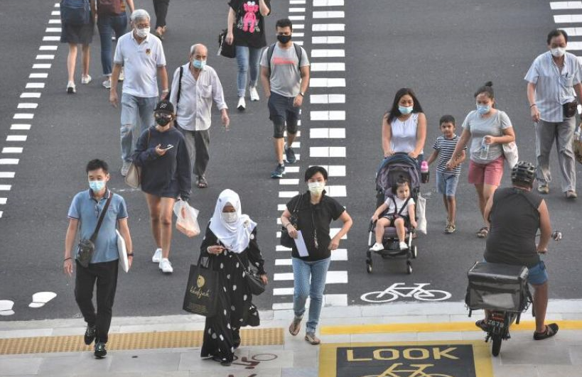 Người dân đeo khẩu trang đi lại trên một con phố của Singapore. (Ảnh: Straits Times)