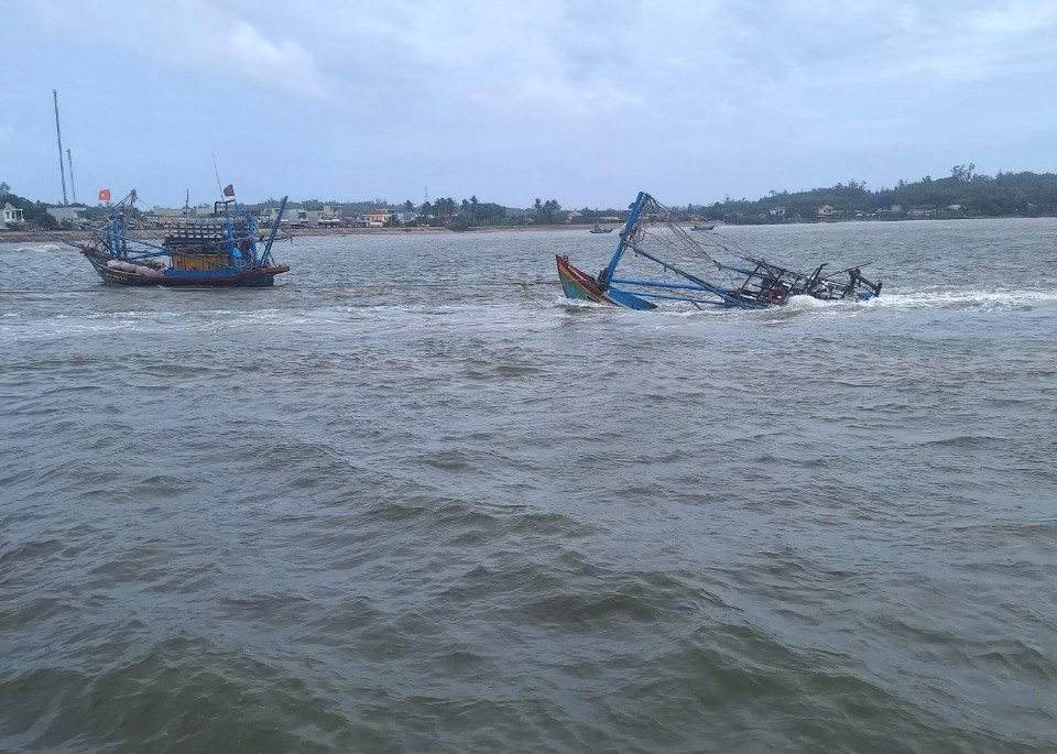 Tàu cá QNg 11213 TS bị sóng lớn đánh chìm.