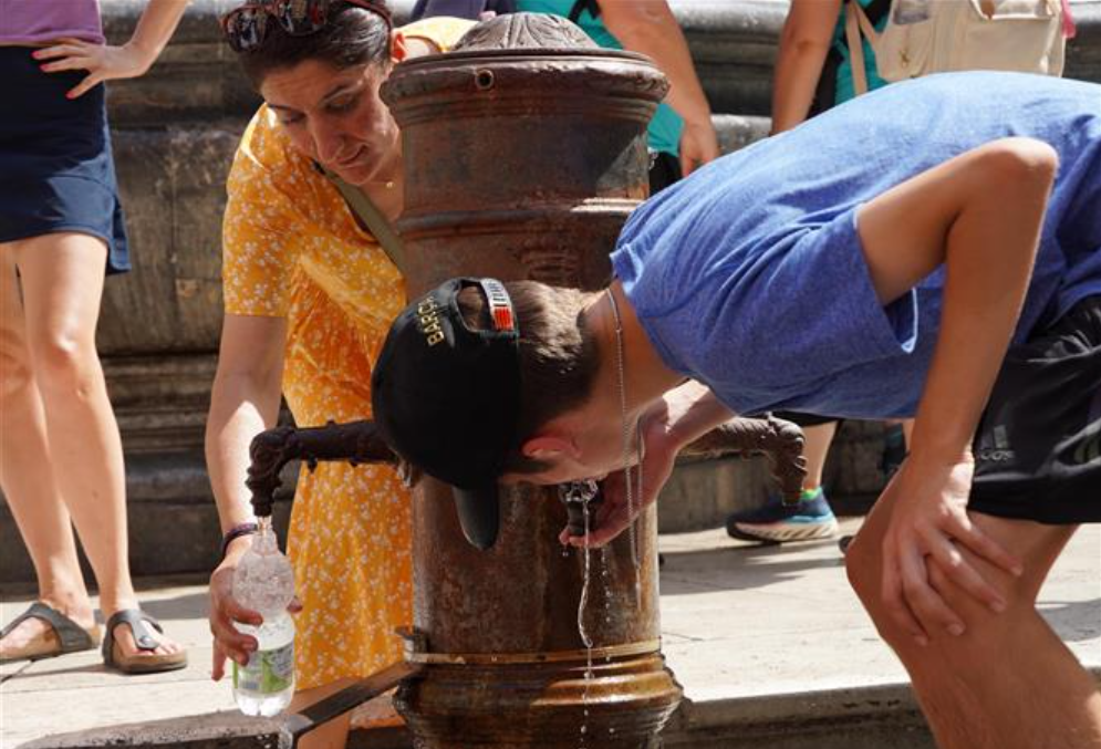 Người dân uống nước để giải nhiệt tại Rome, Italy, ngày 18/7/2023. (Ảnh: THX/TTXVN)