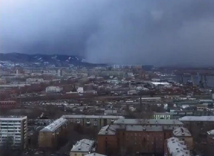 Video quay nhanh cảnh đám mây tuyết bao trùm thành phố Krasnoyarsk ở Siberia giống như một cơn sóng thần khổng lồ được Siberian Times chia sẻ trên mạng xã hội Twitter hôm 11/11.