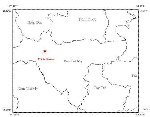 Trận động đất xảy ra tại vị trí có tọa độ (15.352 độ vĩ Bắc, 108.118 độ kinh Đông), có độ sâu chấn tiêu khoảng 6,7 km.