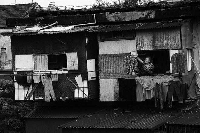 | Những tổ chim cơi nới... treo lơ lửng ngoài trời, là nơi sinh sống bộn bề ở những khu tập thể cũ. |