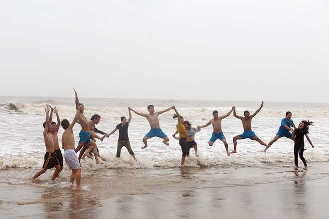Nhiều bạn trẻ nô đùa tại biển Sầm Sơn, Thanh Hóa chiều 10/11 dù biết tin siêu bão Haiyan đang tiến dần về khu vực này.