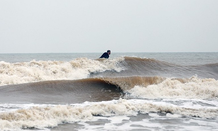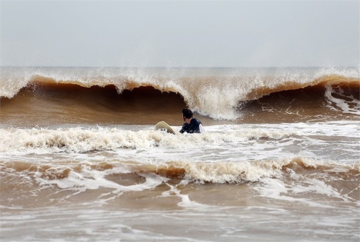 Họ tỏ vẻ khá thích thú đùa giỡn với những đợt sóng cao tới 2m.