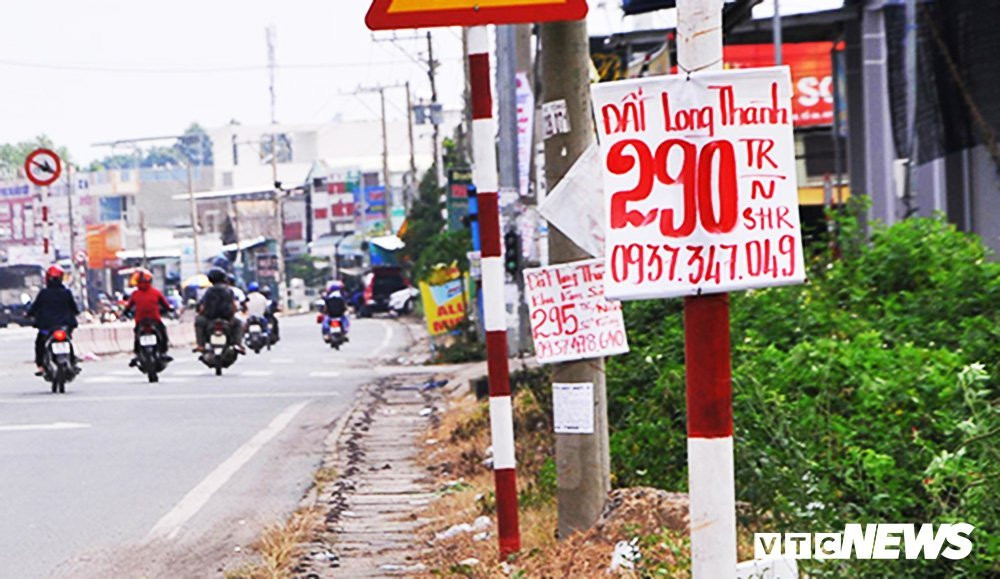 Bảng quảng cáo đất nền được treo dọc quốc lộ 51, thị trấn Long Thành (huyện Long Thành).