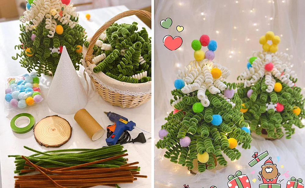 Cây thông Noel thông thường được làm từ nhựa, dây kim tuyến… Tuy nhiên năm nay, cây thông làm từ kẽm nhung đang là mốt và việc tự làm cây thông từ chất liệu này trở thành trào lưu.