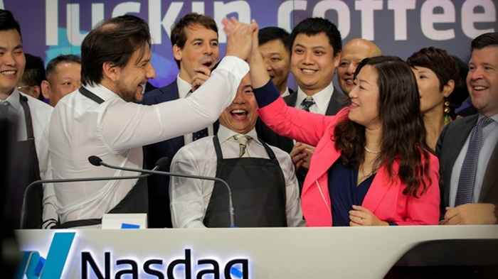 Cựu CEO Jenny Qian Jiaya trong buổi lễ IPO của Luckin Coffee tại sàn Nasdaq (New York, Mỹ). (Ảnh: Reuters)