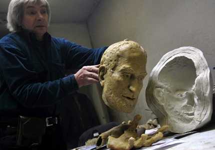 Nhà điêu khắc Erno Toth đang chỉ cho khách hàng-giám đốc GraphicSoft Gabor Bojar-về mẫu bức tượng