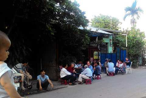 | Người thân của phi công Su-22, trung tá Lê Văn Nghĩa, đang ngồi cả ngoài đường vì nhà nhỏ hẹp, để chờ tin vui từ Quân chủng PK-KQ. |