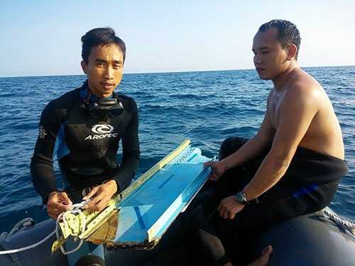 | Lực lượng đặc công nước trục vớt một mảnh vỡ thân máy bay Su-22. Ảnh: NLĐ |