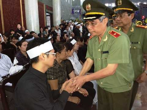 | Đại diện Bộ Công an đến viếng, chia buồn cùng gia quyến hai phi công. |