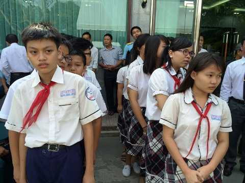 | Học sinh đến viếng hai phi công hy sinh. Ảnh: Phan Cường |
