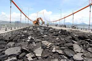 Tuy nhiên, sau 1 năm đưa vào hoạt động, lớp phủ mặt cầu liên tục bị hư hỏng và trở nên nặng nề hơn vào mùa nắng nóng cho đến khi cầu được “đại phẫu” lớp phủ mặt cầu vào tháng 8/2013 vừa qua.