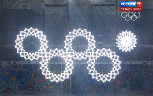 Một kênh truyền hình ở Nga đã lồng hình ảnh 5 vòng tròn trong lễ tập dượt thay vào sự cố để đảm bảo hình ảnh lễ khai mạc diễn ra hoàn hảo.