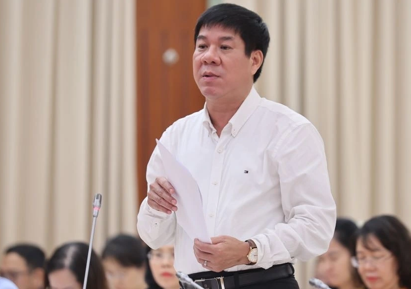 Ông Huỳnh Văn Chương, Cục trưởng Cục Quản lý chất lượng, Bộ Giáo dục và Đào tạo, trả lời câu hỏi của phóng viên về đề xuất liên quan đến kiểm định chương trình đại học trong dự thảo Luật Giáo dục đại học (sửa đổi). (Ảnh: VGP/Nhật Bắc)