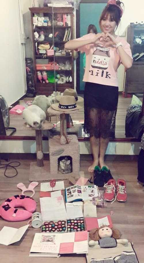 Căn phòng ngủ diện tích hạn hẹp nhưng vô cùng ấm cúng, là nơi cô nàng sinh hoạt và để quà lưu niệm của các fan