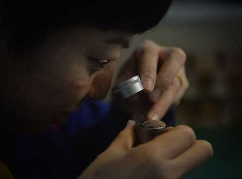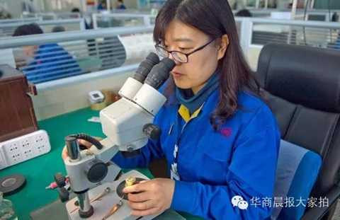 Kính lúp là vật bất ly thân của các công nhân. Đồ vật này giúp họ kiểm tra chính xác sản phẩm.