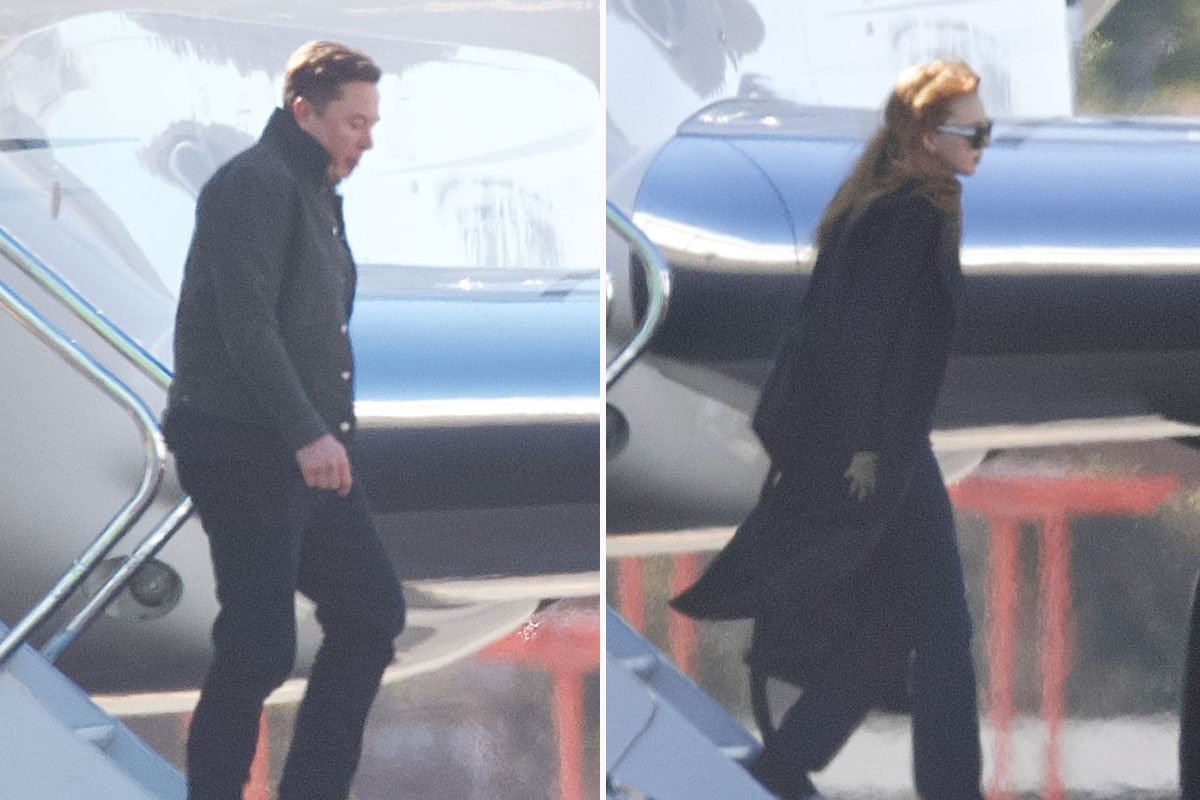 Elon Musk và Natasha Bassett cùng bước xuống chuyên cơ riêng ngày 17/2. (Ảnh: Mega)