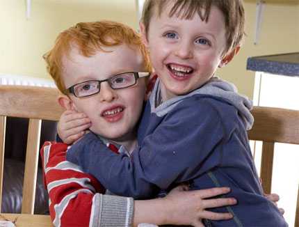 | Finn (trái) nhờ phương pháp luyện tập của chuyên gia và bắt chước anh trai song sinh Kian (phải) nên cậu bé đã phục hồi kỳ diệu dù từng mắc bệnh viêm não. |