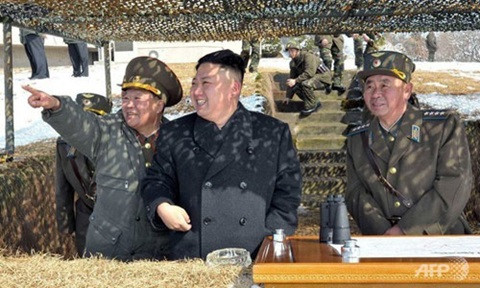 | Ông Kim Jong-un thị sát một cuộc tập trận - Ảnh: AFP |