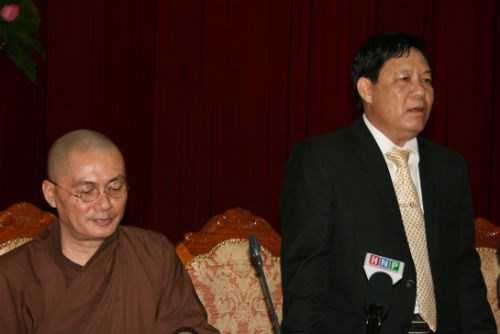| Thượng tọa Thích Minh Hiền và Trưởng ban tổ chức lễ hội chùa Hương Nguyễn Văn Hậu tại buổi thông tin báo chí chiều 7/1. Ảnh Nguyễn Dũng |