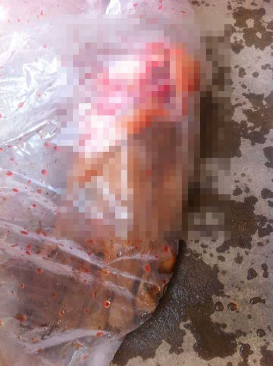 Anh Thanh tá hỏa khi phát hiện bên trong đó chứa 3 túi nhựa, gồm 2 túi đựng nước đá và túi còn lại chứa bàn chân người dính đầy máu tươi. Ngay lập tức, có hàng trăm người dân địa phương ùn ùn kéo đến xem và làm tắt nghẽn giao thông nghiêm trọng. Thấy tình hình không ổn vì số người hiếu kỳ kéo đến càng lúc càng đông nên anh Thanh trình báo với công an địa phương để xử lý vụ việc.
