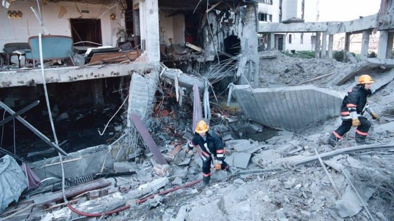 Một phần của đại sứ quán Trung Quốc tại Nam Tư sau vụ đánh bom của Mỹ. (Ảnh: AP)