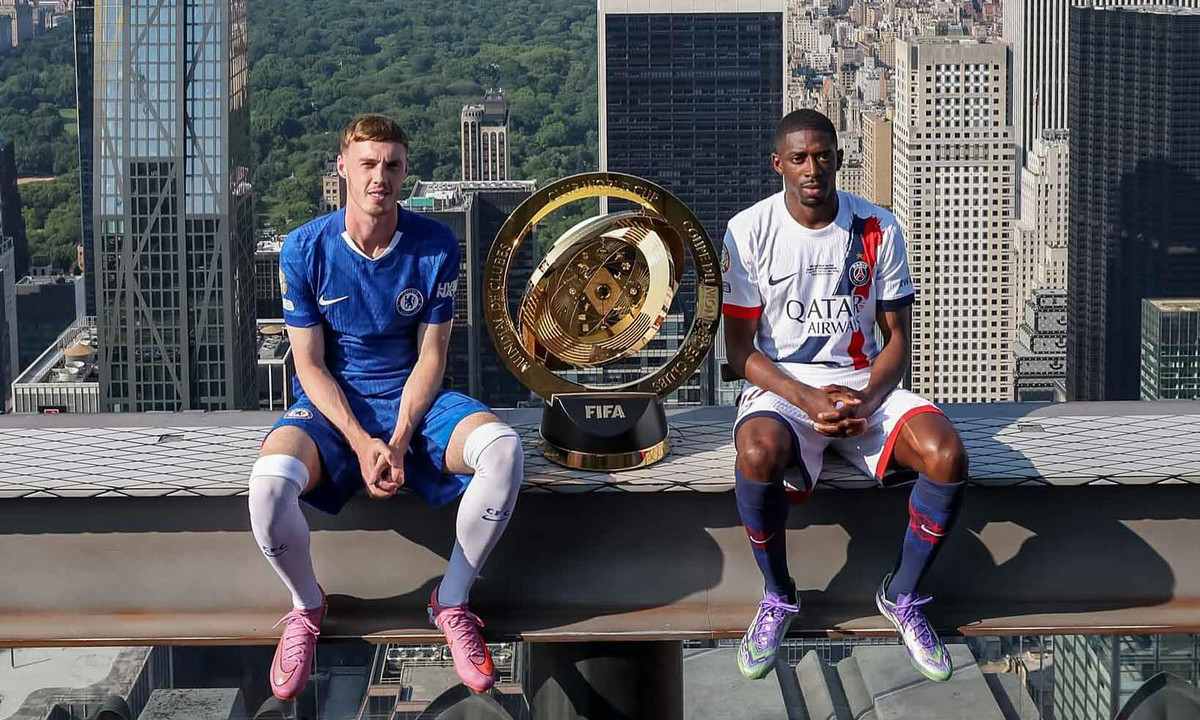 Sáng 13/7, các kênh truyền thông của FIFA Club World Cup 2025 đăng loạt ảnh khởi động cho trận chung kết giải đấu. Cole Palmer (Chelsea) cùng Ousmane Dembele (Paris Saint-Germain) ngồi cạnh chiếc cúp, phía sau là quang cảnh thành phố New York (Mỹ) nhìn từ nóc tòa nhà trung tâm thương mại Rockefeller Center.