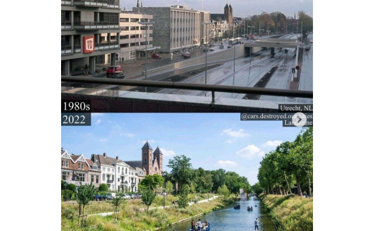 Hơn 40 năm trước, vào những năm 1970, một phần của con kênh chạy qua thành phố cổ Utrecht - Catharijnesingel được đổ bê tông để làm đường ô tô 12 làn. Con kênh trước đó đã có “tuổi đời” 900 năm.