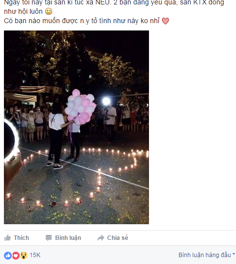 Lần bày tỏ tình cảm ấn tượng này hiện thu hút 15.000 like (thích) và hàng nghìn bình luận trái chiều.