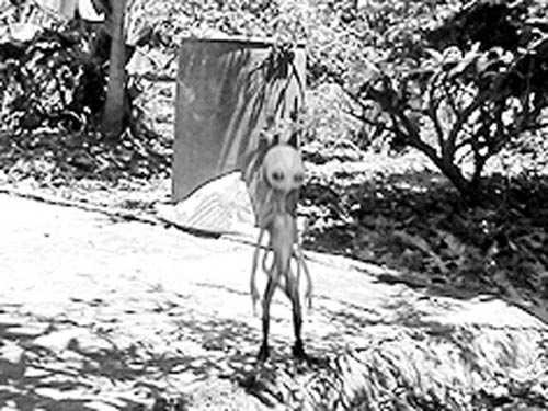 Bức ảnh chụp hình ảnh của một em bé đang chơi trên đê, cùng một “người ngoài hành tinh” với dáng vóc rất lạ: mắt to, tay dài, chân ngắn, nhỏ bé. Tấm hình khiến dân chúng xôn xao, thậm chí còn lập bát hương để thờ cúng.