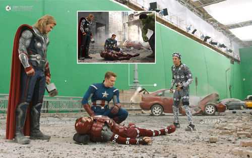 | Cảnh chiến đấu của biệt đội siêu anh hùng với Loki trong Avengers trên thực tế chỉ diễn ra trong một trường quay sơ sài |