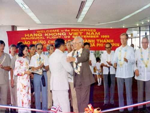 | Lễ đón chuyến bay đầu tiên VN9033 từ TP.HCM đáp xuống Manila ngày 9/9/1985 - Ảnh: T.L |
