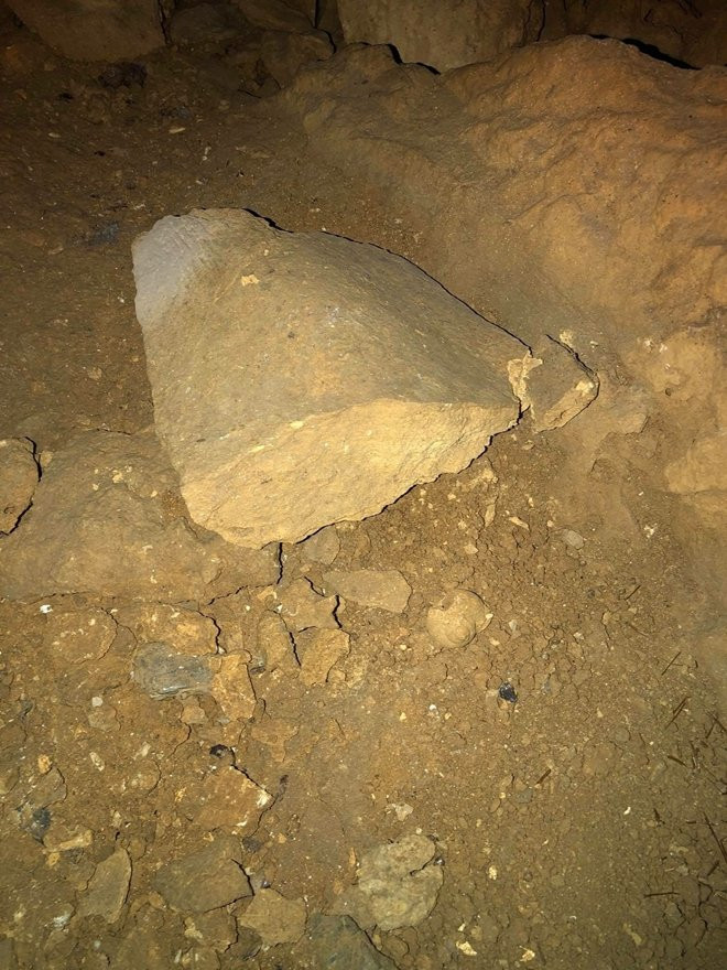Tảng đá có hình mũi tên tìm thấy trong hang, nơi được cho là có kho báu.