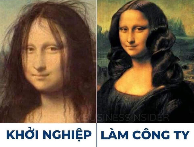 Hai tấm ảnh chế bức tranh nàng Mona Lisa cho thấy sự khác nhau một trời một vực giữa người khởi nghiệp và người đi làm công ty.