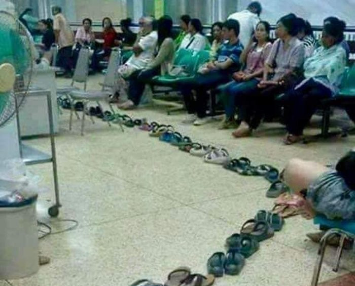 Thực tế, bức anh người dân "xếp dép, xí chỗ khám bệnh" này được lấy trên mạng.