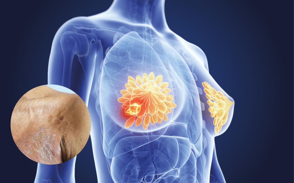 Một số triệu chứng chính của ung thư vú là xuất hiện khối u hoặc vết sưng trên vú hoặc nách. Tuy nhiên, hiện nay, các chuyên gia đã tiết lộ thêm một triệu chứng đáng lo ngại có thể biểu hiện trên da.