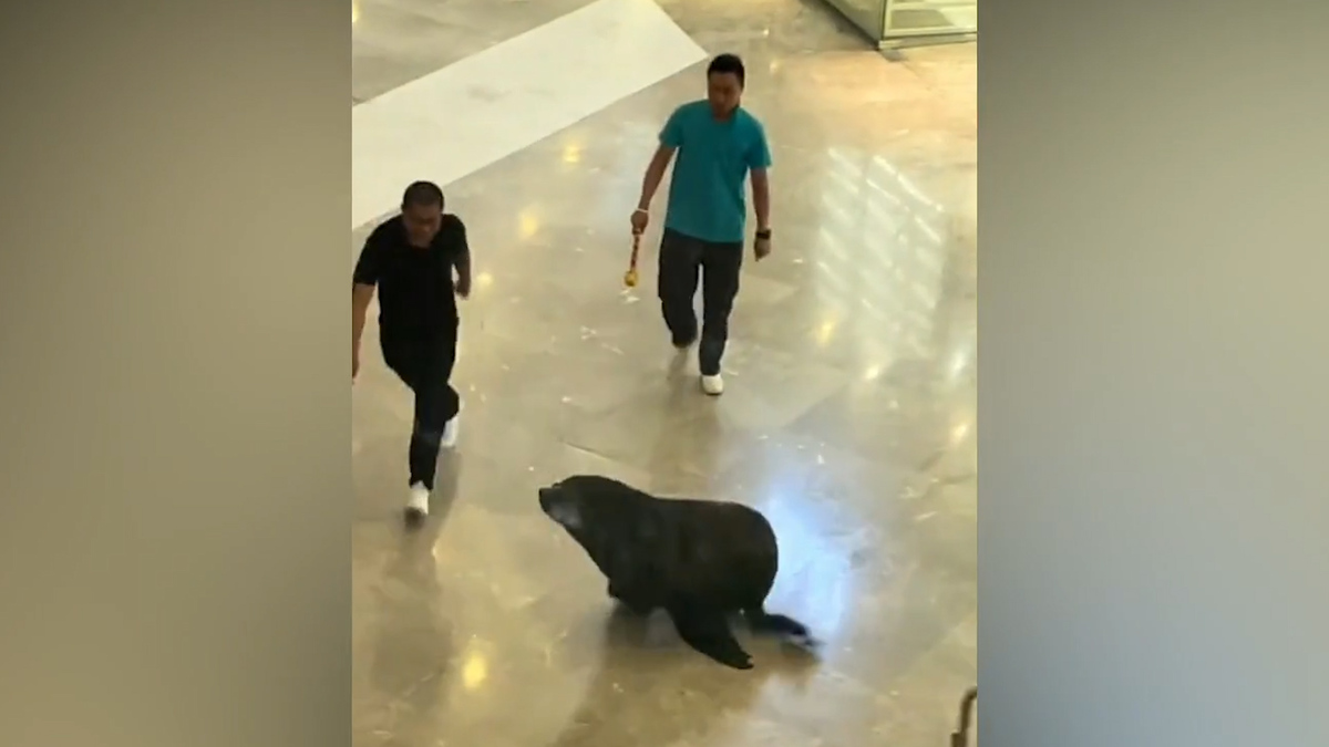 Hàng trăm người choáng váng khi một con sư tử biển xuất hiện giữa trung tâm thương mại tại Lạc Dương (Hà Nam, Trung Quốc).