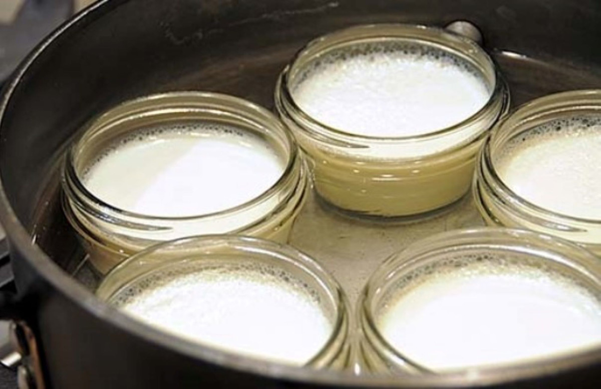 Bước 3: Rót hỗn hợp vào từng hũ thủy tinh, đậy nắp kín, tùy vào nhiệt độ thời tiết nóng hay lạnh mà ủ từ 6-8 tiếng trong nồi cơm điện. Nếu sử dụng lò nướng để kiểm soát nhiệt độ thì có thể ủ khoảng 4 tiếng là được.