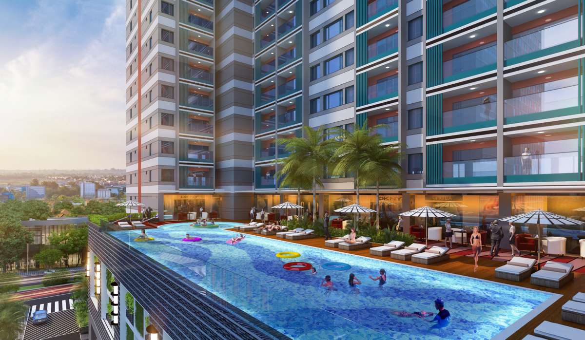 Hồ bơi skyview xanh mát mang đến không gian thư giãn tuyệt vời cho cư dân Grand Center Quy Nhon