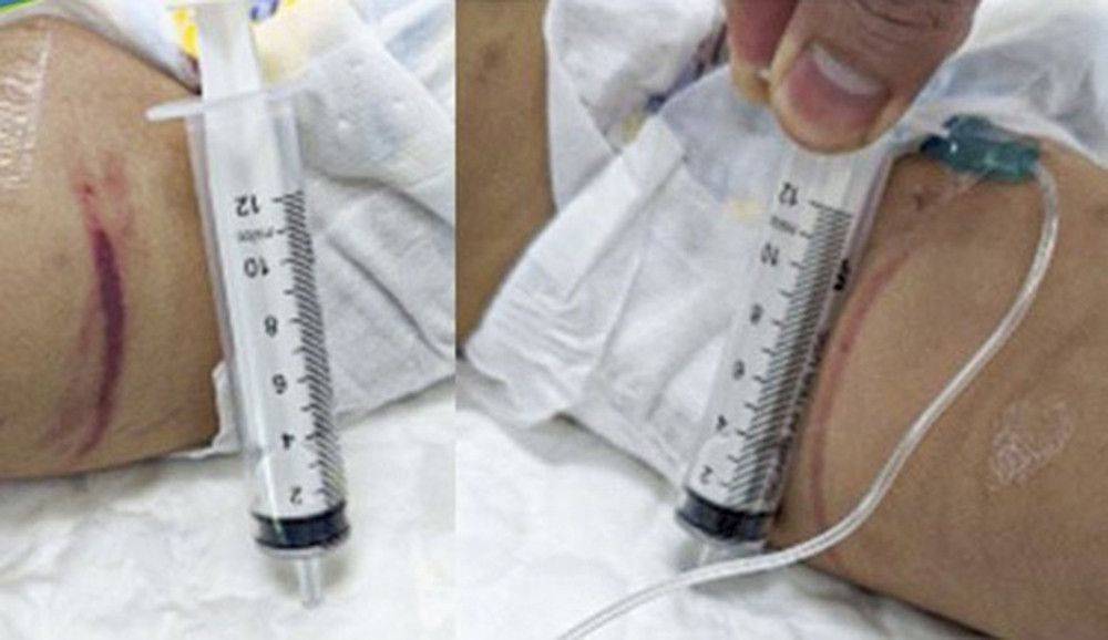 Tại bệnh viện, các bác sĩ thấy trẻ có biểu hiện hôn mê, suy hô hấp nặng phải hỗ trợ thở máy, suy tuần hoàn, rối loạn tiêu hóa. Trên da có vết thương ở nhiều vị trí như vết lằn kích thước 4-5cm ở cổ chân 2 bên, vết lằn kích thước 10-12cm ở mặt ngoài đùi phải, vết lằn tím tụ máu kích thước 10cm ở mặt ngoài đùi trái, vết bầm tụ máu kích thước 3x4cm ở trán.