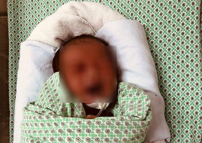 Cháu bé sơ sinh bị bỏ rơi ở thị xã Sơn Tây đang được điều trị tại Bệnh viện Xanh Pôn. (Ảnh: BVCC)