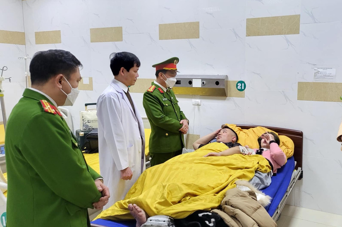 Lực lượng chức năng thăm hỏi tình hình bệnh nhân trong vụ tai nạn. (Ảnh: Báo Tuyên Quang)