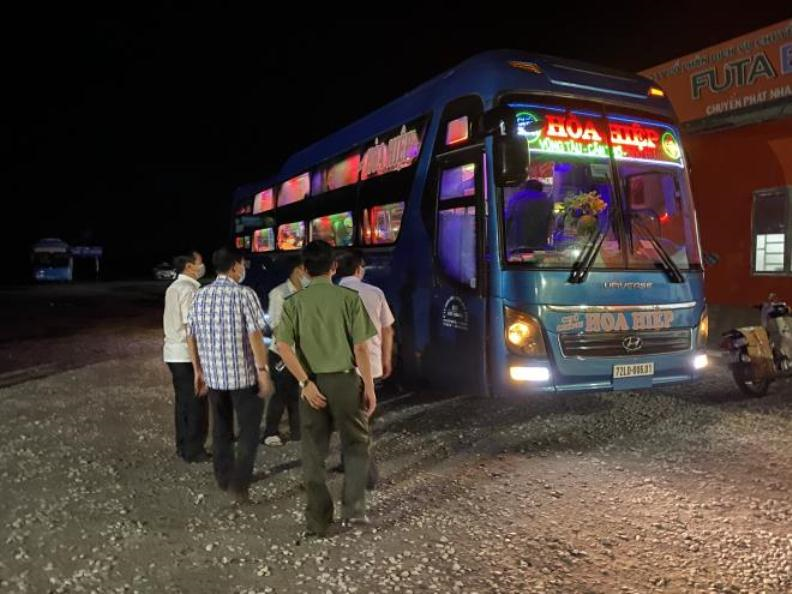 Lực lượng chức năng kiểm tra bến xe Vị Thanh.