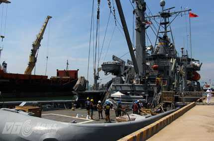“Tùy từng trường hợp mà tàu có thể cẩu, kéo các tàu khu trục lên khỏi mặt nước, ra khỏi bãi đá ngầm hay mắc cạn... Thậm chí tàu có thể kéo cả khu trục lớn như USS Chung-Hoon ra khỏi bãi cạn…”, sĩ quan điều hành tàu USNS Salvor Aguinaldo cho biết.