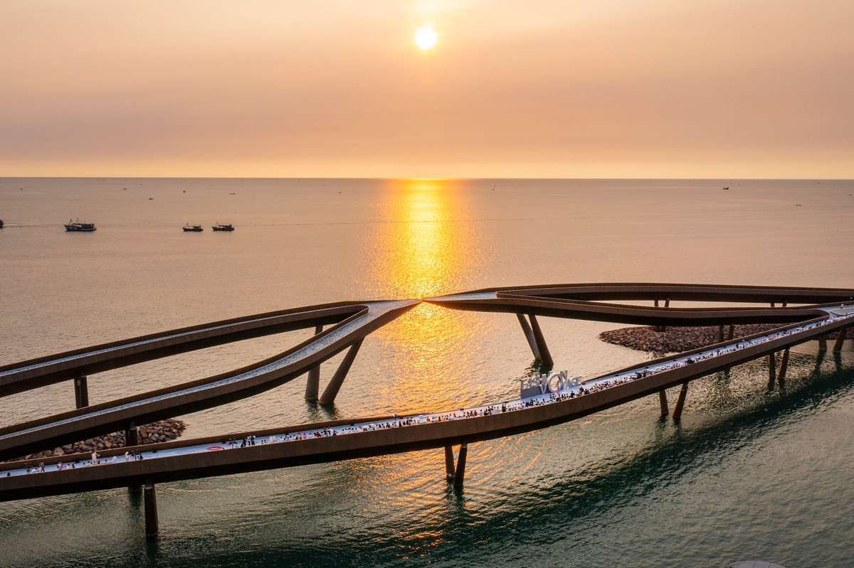 Cầu Hôn, cây cầu được thiết kế với 2 nhánh dài 400 m, hợp làm thể thống nhất nhưng không chạm, cách nhau một khoảng 45 cm. Khát khao yêu cháy bỏng tịnh tiến theo từng bước chân 2 người từ 2 phía cầu và cao trào khi đứng trước khoảng cách nhỏ, sẽ chỉ có thể được lấp đầy bởi những cái hôn, cái nắm tay thật chặt và ánh hoàng hôn diệu vợi.